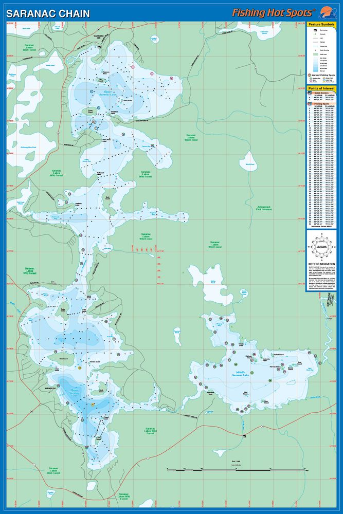 Saranacs Chain, New York Waterproof Map (Fishing Hot Spots)