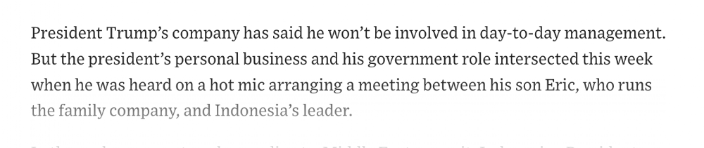 there was alot of criticism about any involvement of Pres Biden, Hunter, and Ukraine. Funny when Trump does it....it is considered business as usual.